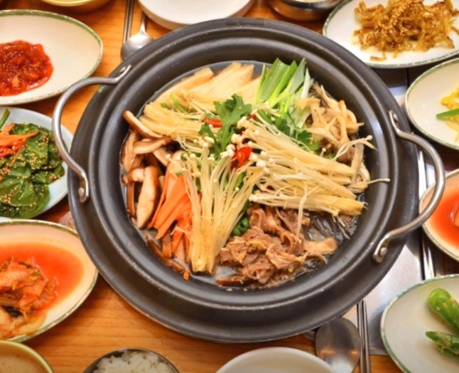 - 맑고 깔끔한 국물에 새우젓과 각종 야채, 고기 풍미가 어우러진 전골 형태