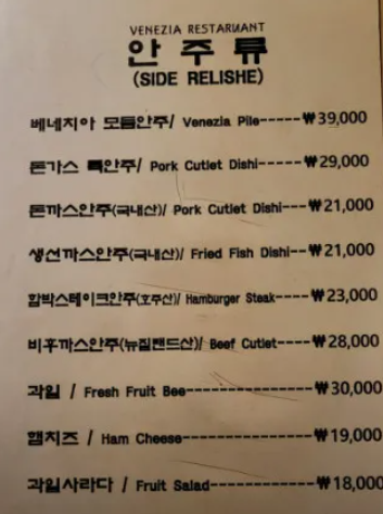 - 베네치아 특정식: 19,000원