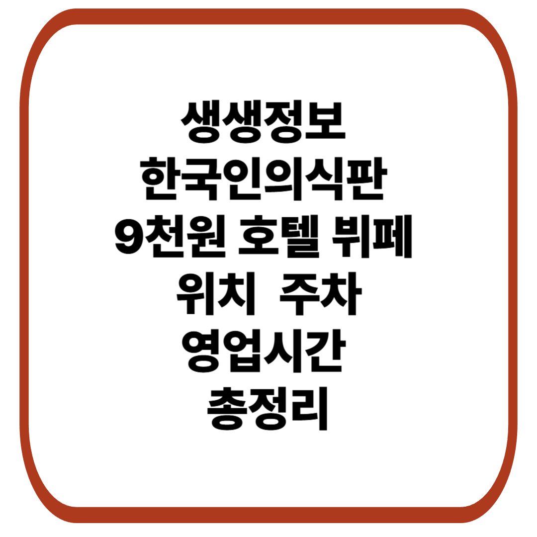 생생정보 한국인의식판 9천원 호텔 뷔페 위치·주차·영업시간 총정리