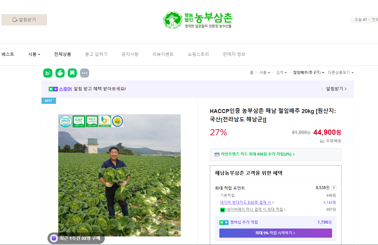| 상품명 | 농부삼촌 해남 절임배추 |