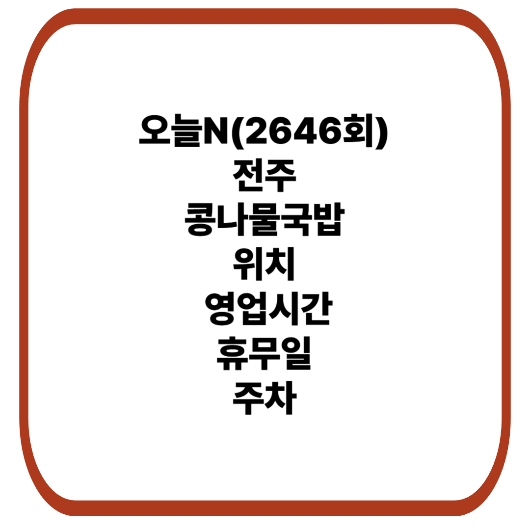 오늘N(2646회) 전주 콩나물국밥 위치, 영업시간, 휴무일, 주차 총정리