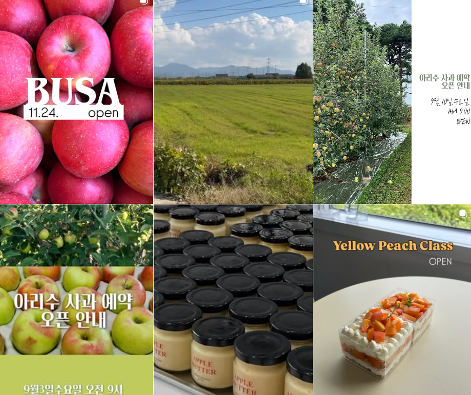- 예약 필수: 사과 수확 및 체험 프로그램은 시즌에 따라 재고, 수확 상태가 빠르게 변함 — 전화 또는 SNS DM으로 확인