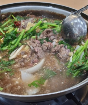 직접 테이블에서 다진 마늘과 육수를 넣어 끓여 먹는 방식이 이곳의 시그니처입니다.