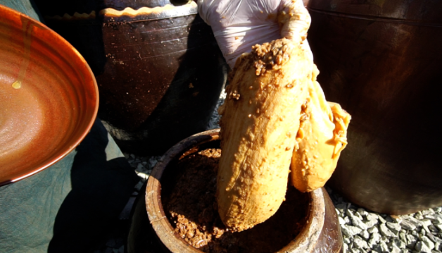 - 이곳의 장류는 기계 가공이 아닌 전통 방식 — 장작불에 콩 삶기 → 메주 빚기 → 자연 숙성 과정을 거쳐 만듭니다.