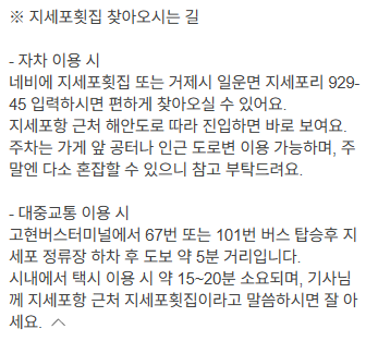 - 주차: 매장 앞 넉넉한 주차장 완비