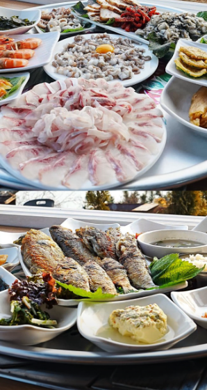 - 제철 해산물 (해삼, 멍게, 전복 등)